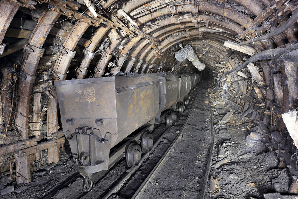 07/04/2016 | Berlines chargées de charbon dans une galerie de roulage du 1er étage, ici à double voie