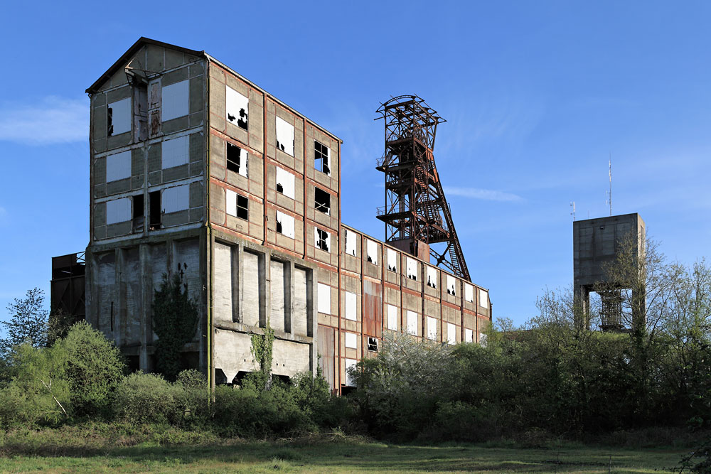 06/04/2011 | Chevalement métallique du puits Bois III, au fond tour d'extraction du puits Bois II - Nyoiseau