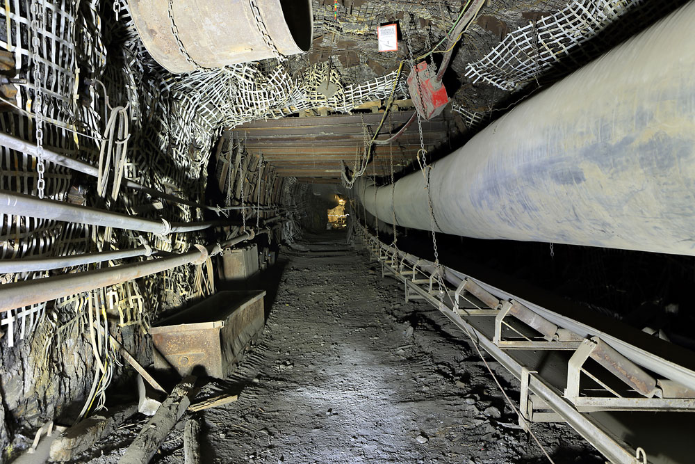 06/10/2017 | Mine de Monte Sinni : ventube et convoyeur à bande dans une galerie du secteur Nuraxi Figus