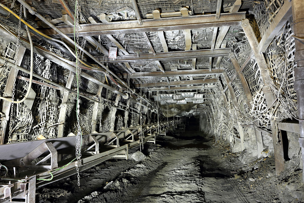 06/10/2017 | Mine de Monte Sinni : soutènement métallique et convoyeur à bande dans une galerie du secteur Nuraxi Figus