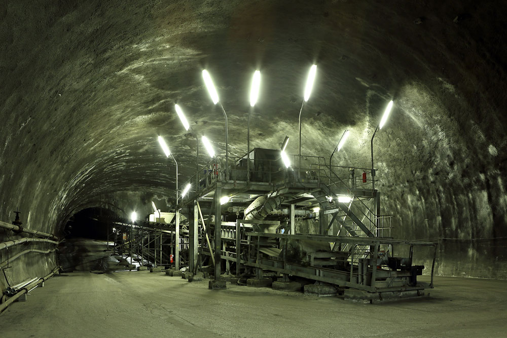 06/10/2017 | Mine de Monte Sinni : jonction de deux convoyeurs à bande dans la descenderie routière