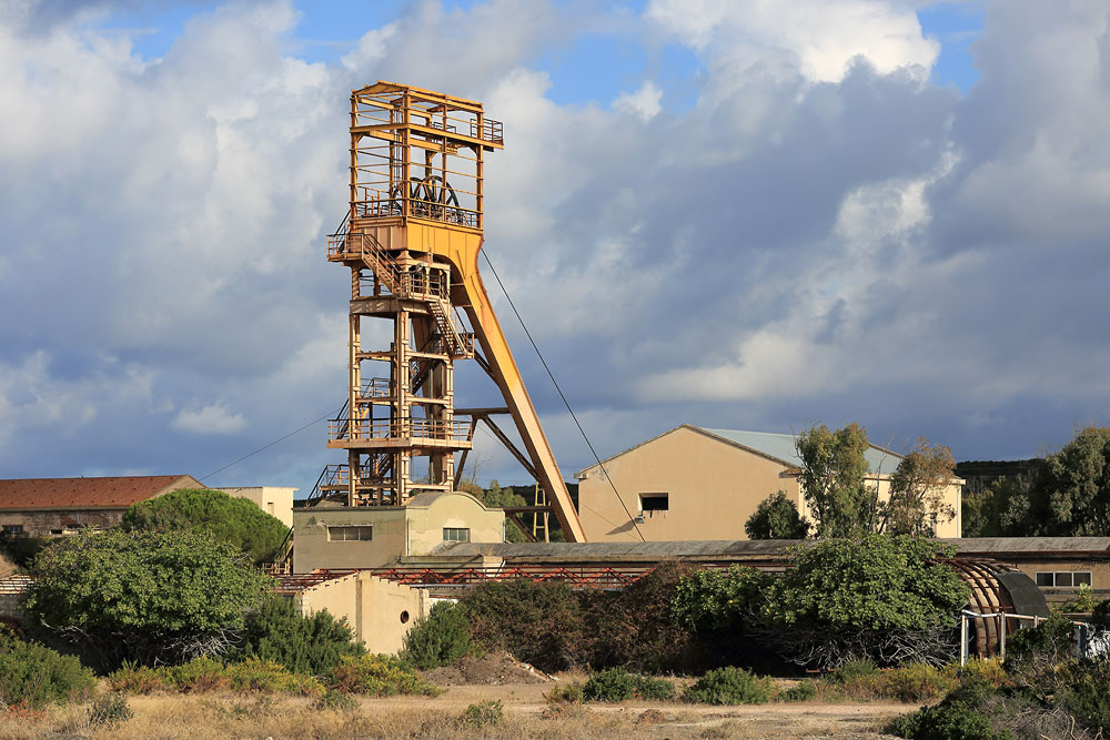 09/10/2017 | Mine de Monte Sinni - siège Seruci : chevalement, recette et bâtiment de la machine d'extraction du puits 1