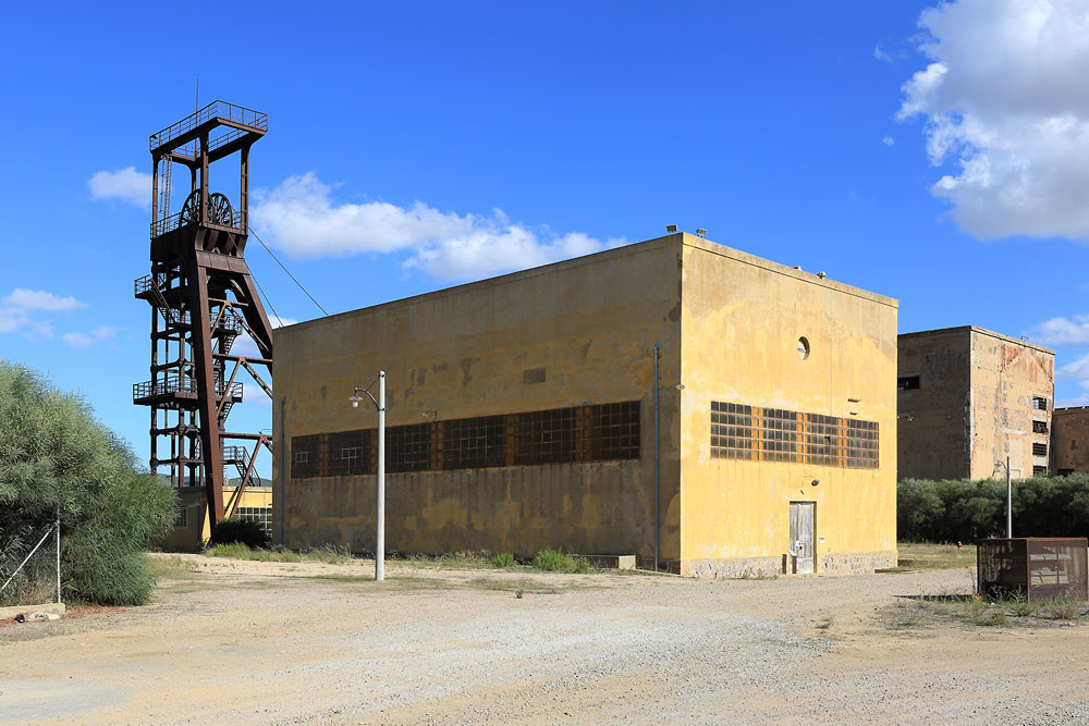 08/10/2017 | Mine de Serbariu : bâtiment de la machine d'extraction et chevalement du puits 1