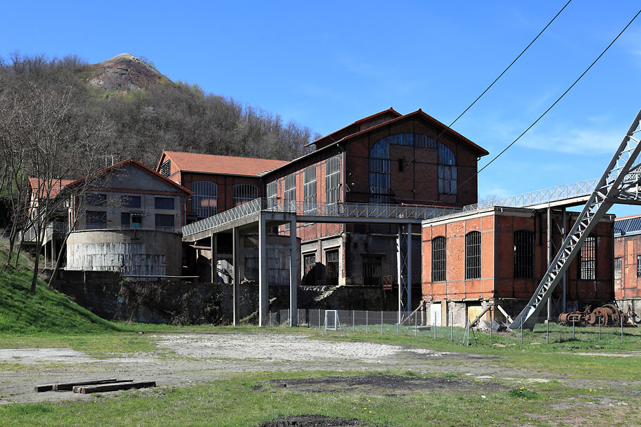 05/04/2011 | Bâtiment de la machine d'extraction du puits Couriot ; au fond les crassiers de Michon - Saint-Etienne