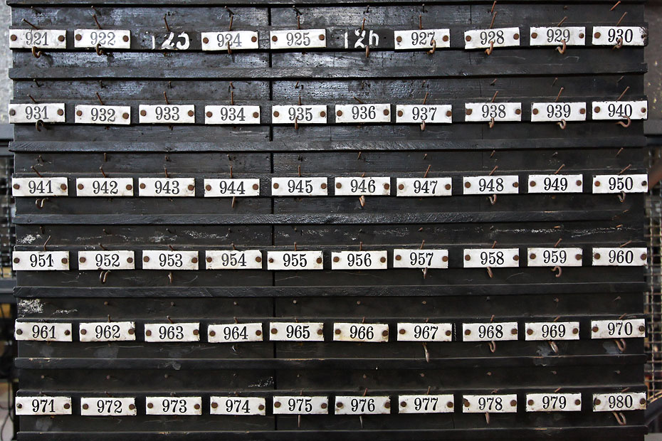 22/03/2009 | Tableau des jetons de lampe (taillettes) dans la lampisterie du siège Couriot - Saint-Etienne
