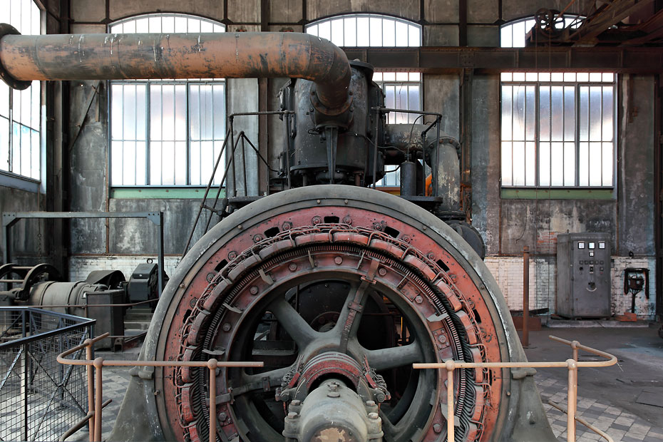 25/05/2011 | Un compresseur Borsig et son moteur électrique dans la salle des machines - Siège Couriot à Saint-Etienne