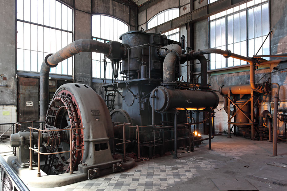 25/05/2011 | Un compresseur Borsig et son moteur électrique dans la salle des machines - Siège Couriot à Saint-Etienne