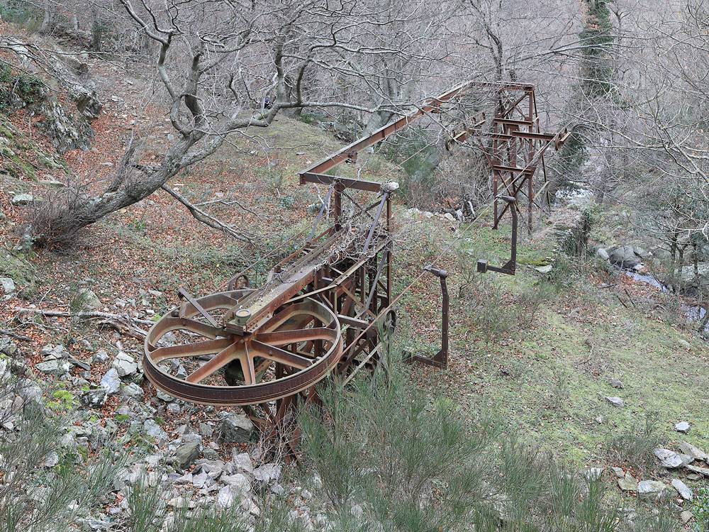30/12/2022 | Station supérieure du câble transbordeur de la Farga pour descendre les grumes de bois / Sorède