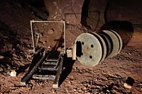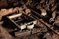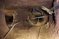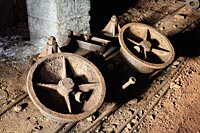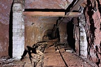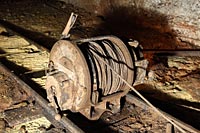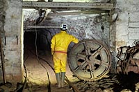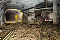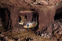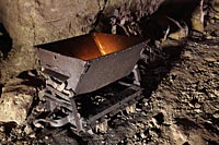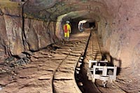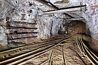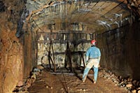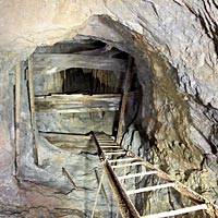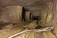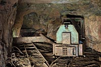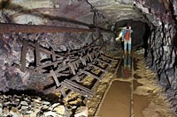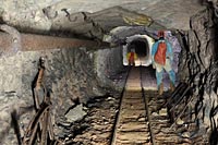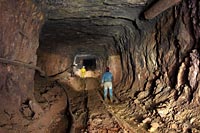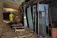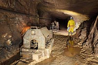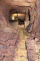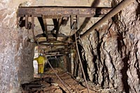 Dans sa période la plus moderne, la mine était exploitée à l'aide d'engins diesel sur pneus qui accédaient aux chantiers par une grande descenderie. Elle plonge désormais dans le noyage... On distingue facilement les chantiers modernes, aux galeries larges et régulières, des quartiers plus anciens. Dans les secteurs visités, le minerai était essentiellement extrait par la méthode des chambres et piliers abandonnés.