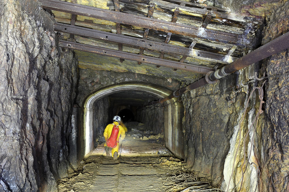Certains passages du roulage principal sont consolidés par des bouts de rails ou maçonnés