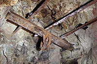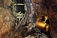 Cette mine de plomb argentifère fut exploitée è la fin du XIXème siècle, jusqu'au début du XXème. Elle a donné lieu a d'importants travaux de recherches, parfois décevants, et à une petite extraction (627 tonnes de plomb argentifère en 1915 par exemple). On y entre par un travers-banc inondé qui aboutit rapidement sur un grand dépilage vertical et une tête de puits (noyé) joliment maçonnée. Nous n'avons pas pu explorer tout le réseau en raison du niveau d'eau important.