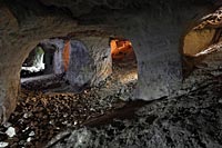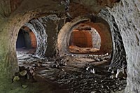 superposés ; la partie inférieure et aval est noyée afin d'alimenter un captage d'eau. Les galeries se développent sur un linéaire d'environ
