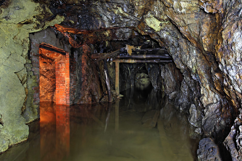 Travers-banc principal, sur la gauche se trouve un puits noyé - Mine de plomb-argentifère T