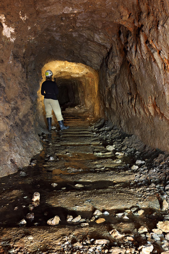 Travers-banc principal où l'on peut voir les marques laissées au sol par la voie de roulage - Mine de plomb argentifère et baryte BDM