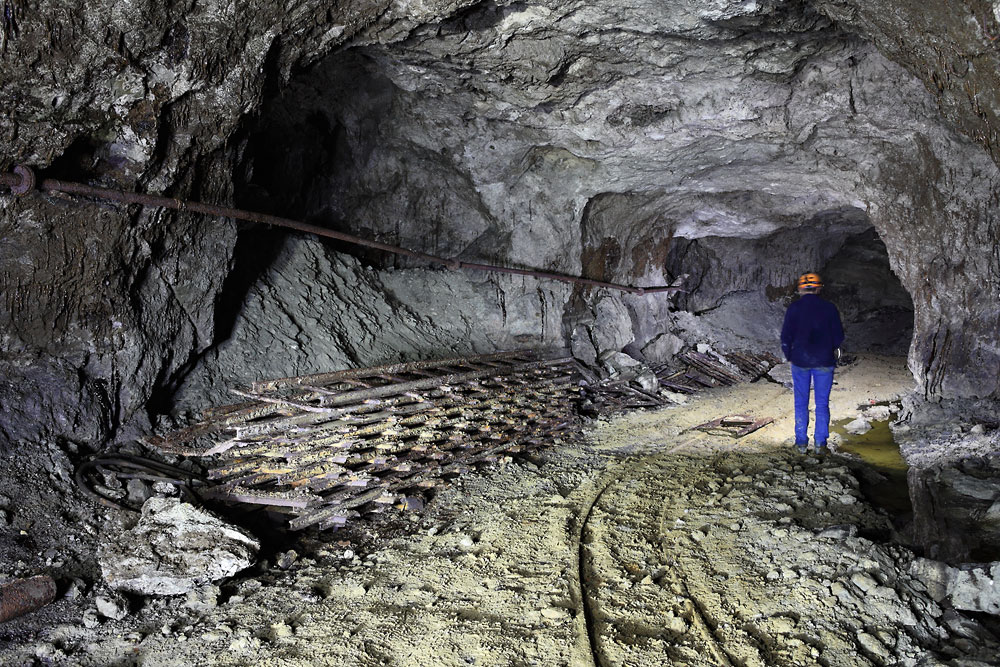 Stock de tronçons de voie ferrée dans ce roulage secondaire desservant des quartiers d'exploitation