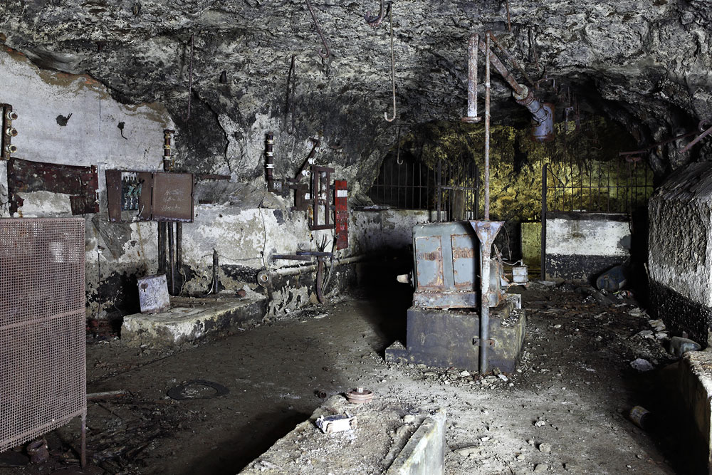 Ancien local des compresseurs ; au centre l'unique vestige d'un compresseur 'Spiros'
