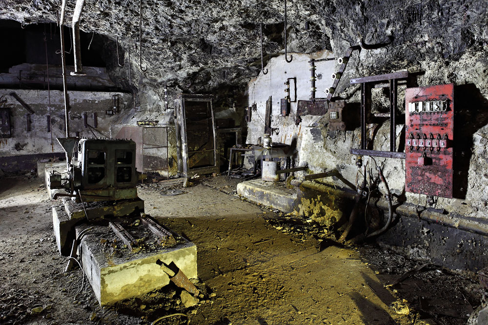 Ancien local des compresseurs ; à gauche l'unique vestige d'un compresseur 'Spiros'