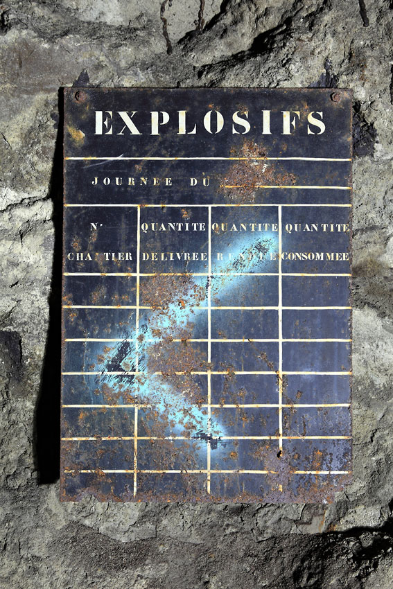 Tableau de suivi des explosifs sur le parement d'une galerie