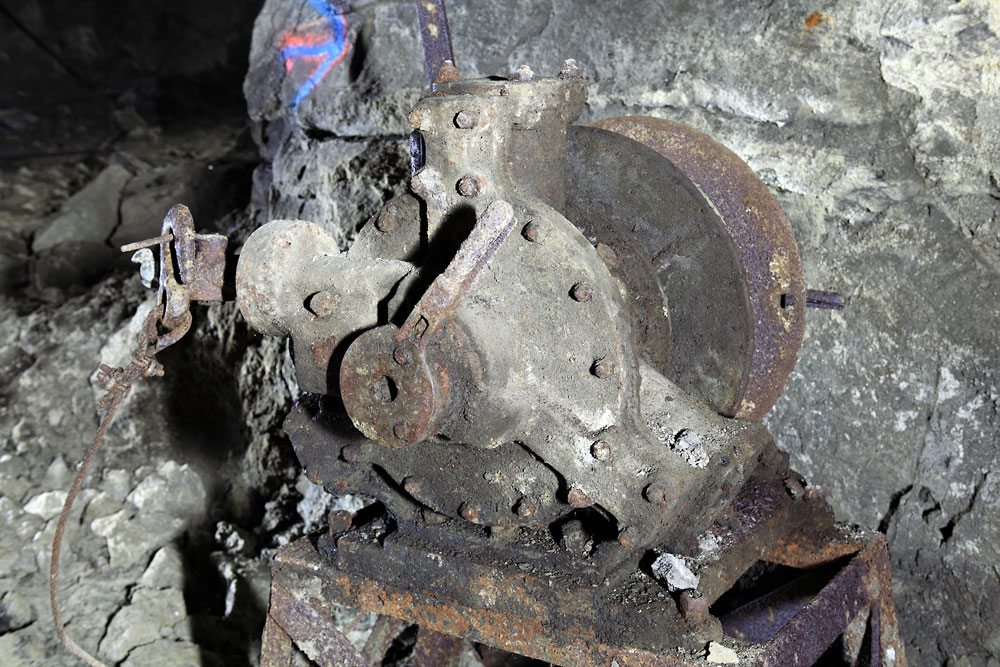 Détail sur un treuil à air comprimé dans un quartier d'exploitation