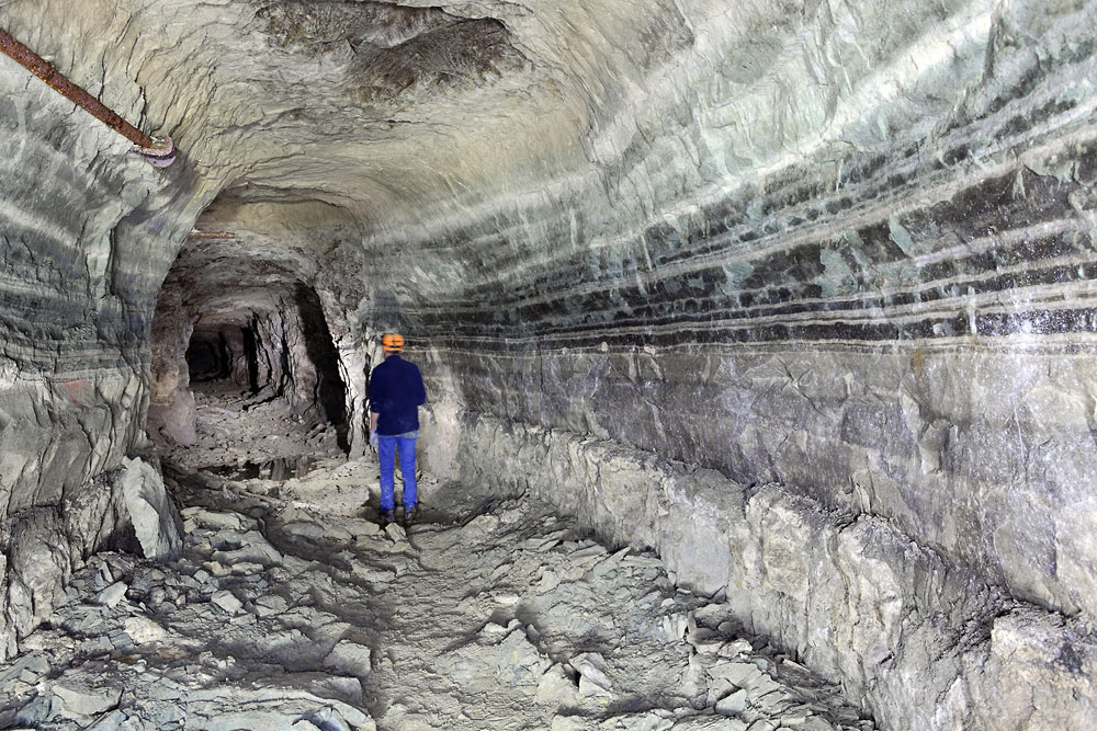 Dans cette galerie, les parements laissent apparaître les nombreuses strates marneuses
