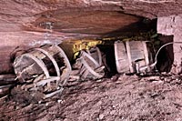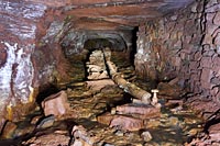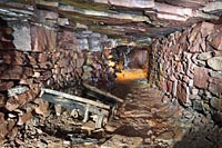Deux secteurs ont été visités : le premier, autour du puits principal d'extraction, comporte un grand roulage et plusieurs plans inclinés très esthétique qui permettaient de remonter le minerai vers le niveau d'extraction. C'est le quartier le plus récent de la mine. En bas de l'exploitation, une galerie d'exhaure a été creusée pour évacuer l'eau vers la rivière voisine. Le second secteur visité est plus ancien et moins vaste. Il était probablement relié au reste de la mine mais des effondrements nous ont empêché de faire la liaison avec le premier secteur.