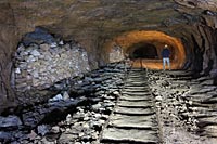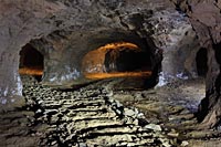 La partie visitée se compose d'une belle galerie de roulage encore équipée de sa voie ferrée (à l'écartement assez large). Elle dessert de grands quartiers d'exploitation numérotés. Le minerai était principalement extrait selon la méthode des chambres et piliers abandonnés. Des voies de roulage provisoires parcouraient les chantiers pour l'évacuation du minerai. La couche de minerai de fer est surmontée d'une couche marneuse à la faible tenue. Les mineurs prenaient soin de laisser une petite épaisseur de minerai pour assurer un bon maintien du toit. Avec le temps, le toit a fini par céder et les marnes se sont répandues dans les galeries en de nombreux endroits. La progression reste possible en passant par dessus ces grands tas de roches grises très friables. Malheureusement une grande partie du réseau n'est plus accessible en raison d'importants éboulements (ou foudroyages ?).