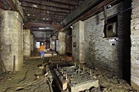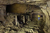 Au bout de la galerie «Secondaire 4», un important chantier de déblaiement et de confortation de la galerie a été terminé début 2013. De là, nous avons suivi la galerie «Principale 5» menant au grand atelier dit des «Six-Bornes». La visite s'est achevée par un passage dans le troisième atelier du fond, puis dans des quartiers plus anciens où est encore visible une superbe pompe destinée à alimenter en eau les perforatrices en couche siliceuse.