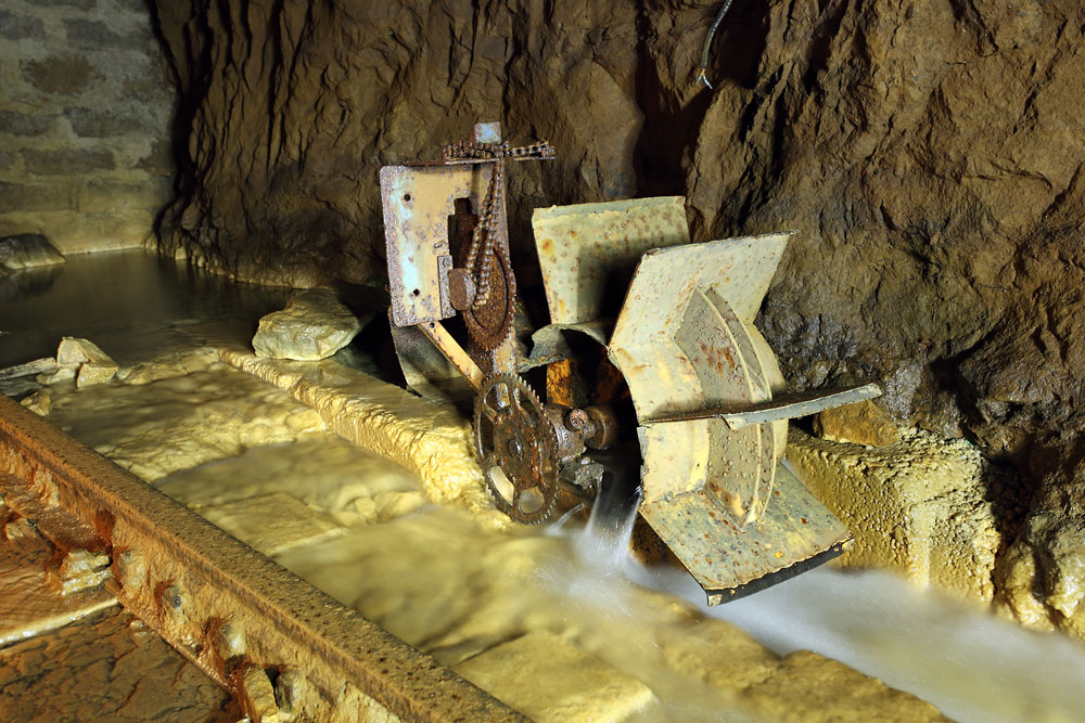Dans la «Secondaire 4», ce moulin à eau entraînait une petite génératrice électrique ; nous sommes tout près d'un important atelier