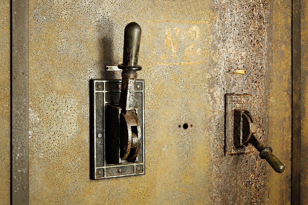 Sectionneurs sur une armoire électrique dans le grand atelier