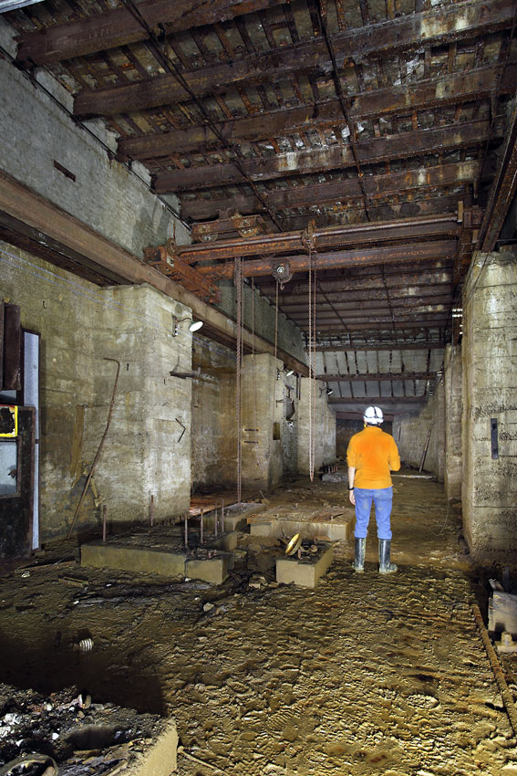 Salle des machines dans le grand atelier ; ici se trouvaient les compresseurs, convertisseurs électriques...