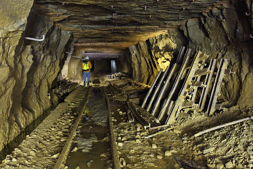 Stock de rails dans une galerie secondaire desservant les quartiers d'exploitation