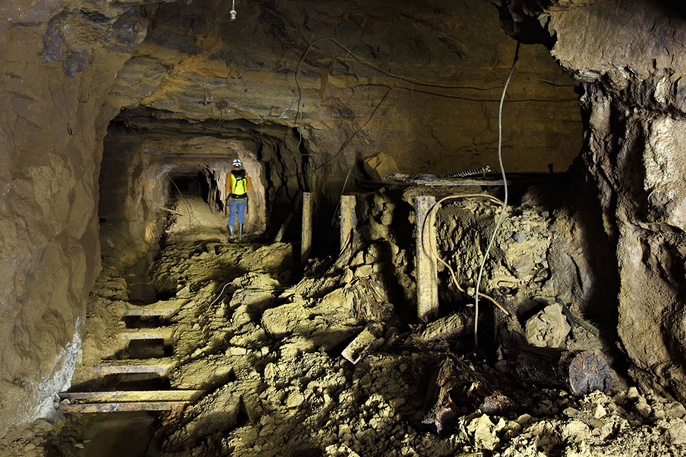Dans un roulage secondaire, estacade de chargement du minerai dans les berlines