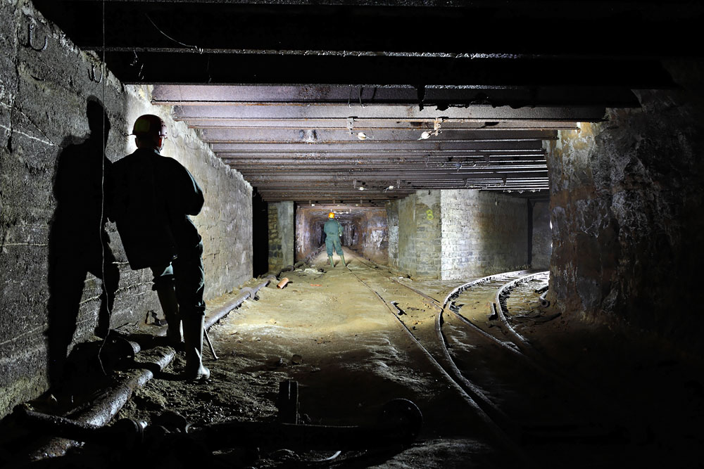 Galeries maçonnées et fortement consolidées non loin de l'entrée de la mine ; elles mènent à de vieux travaux