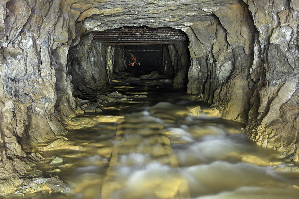 Les eaux de ruissellement de la mine sont collectées dans cette galerie, pour être ensuite pompées