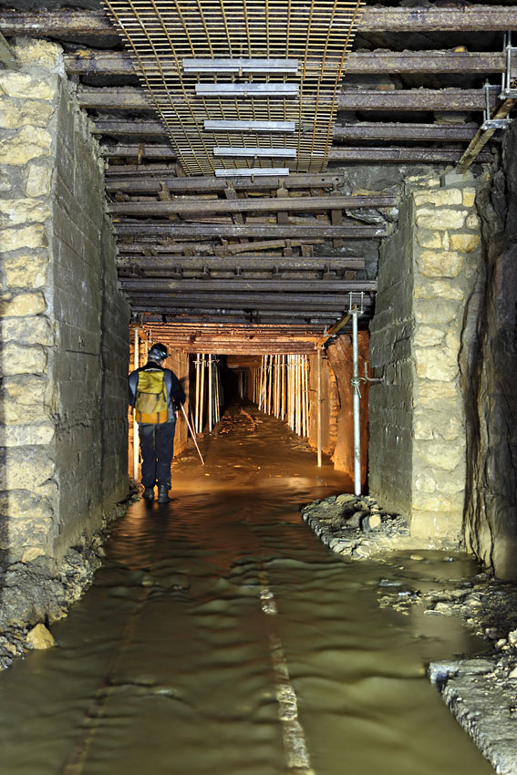 Importants travaux de déblaiement et de confortation dans une galerie de drainage des eaux de la mine