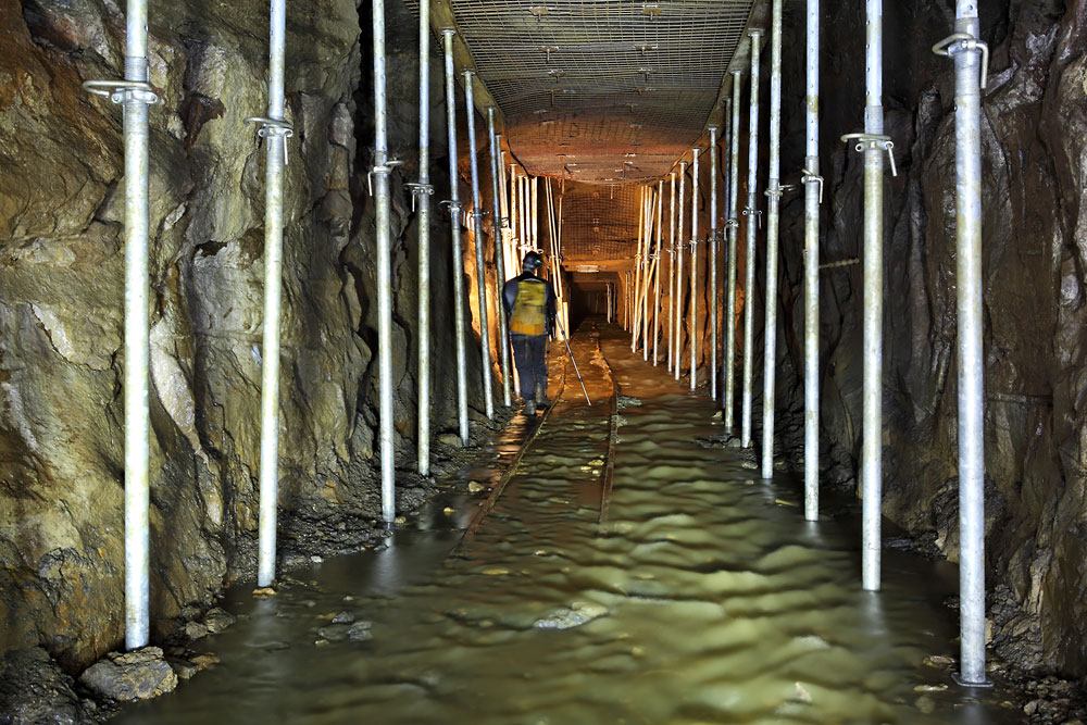 Importants travaux de déblaiement et de confortation dans une galerie de drainage des eaux de la mine