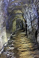 Les travaux visités se composent d'un travers-banc de faible section, qui recoupe perpendiculairement plusieurs filons. Il débouche malheureusement sur des galeries noyées jusqu'au toit. Des galeries furent tracées en suivant les filons et le minerai a laissé place à d'impressionnants dépilages subvertivaux sous nos pieds et au-dessus de nos têtes. Près de l'entrée, sur l'ancien carreau de la mine, divers bâtiments en pierre sont toujours debout.