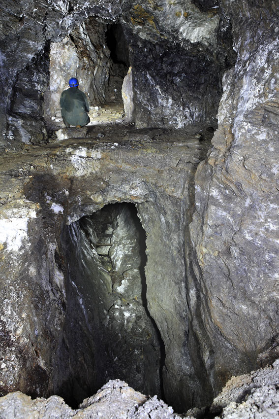 La galerie secondaire débouche sur de profonds dépilages inaccessibles sans matériel