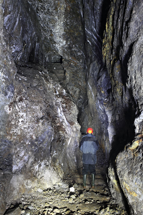 Toujours dans le même filon, un dépilage subvertical s'ouvre au-dessus de nos têtes
