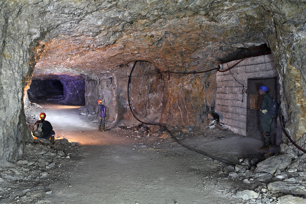 Descenderie routière hélicoïdale au coeur de la mine, à droite un local électrique