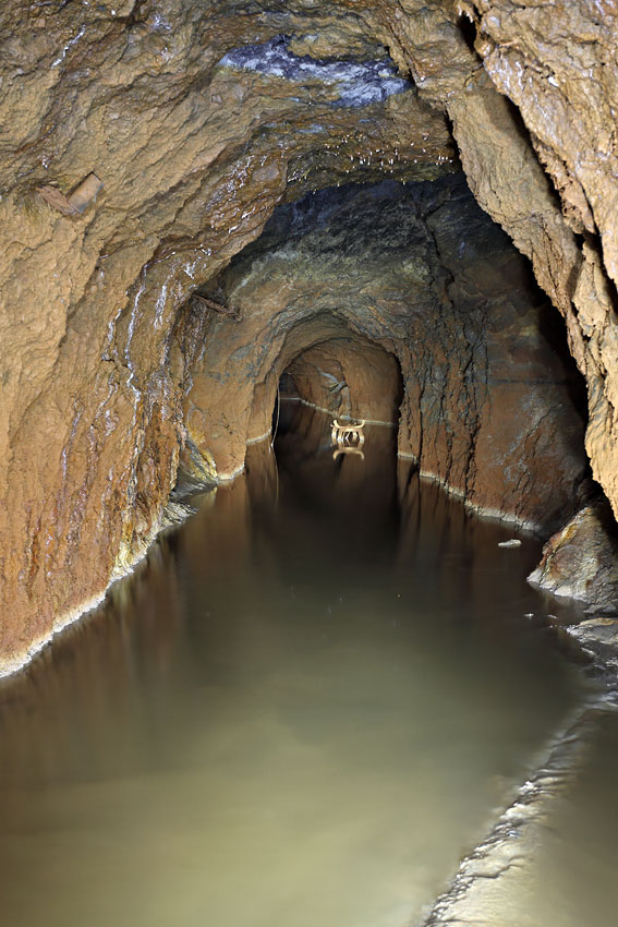 Après plusieurs centaines de mètres dans la galerie de roulage, le niveau de l'eau s'élève, fin de visite...