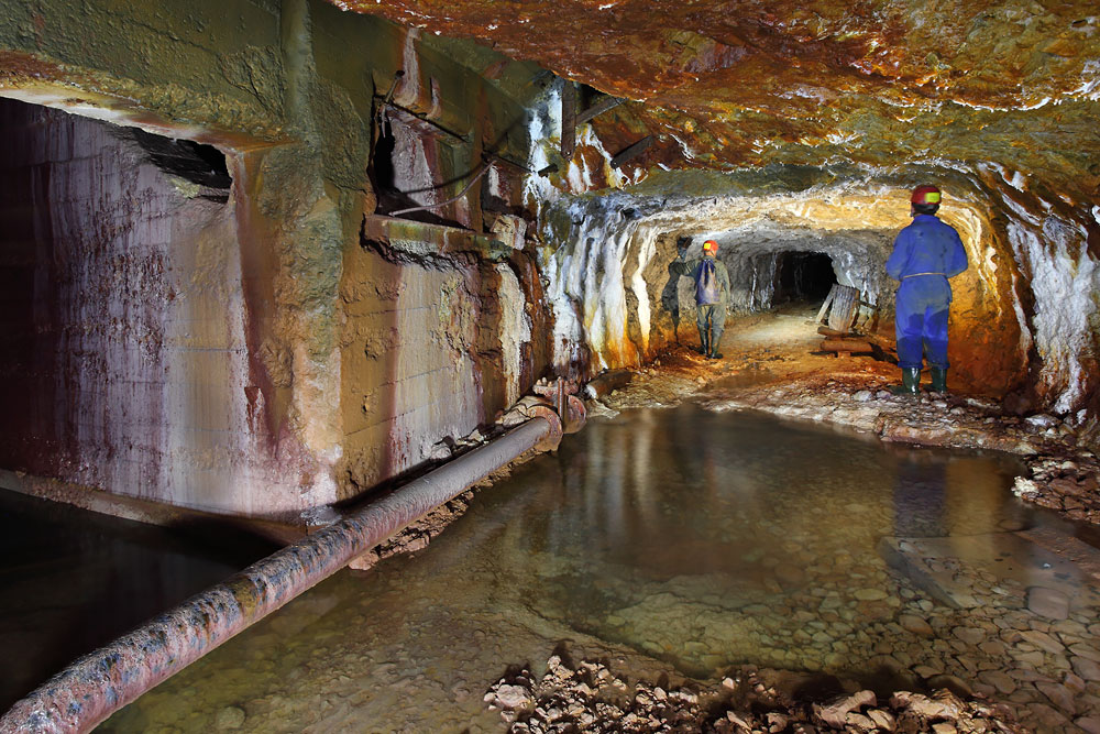 Dans le roulage, trémie de chargement du minerai ; elle est surmontée par une cheminée haute de quelques dizaines de mètres