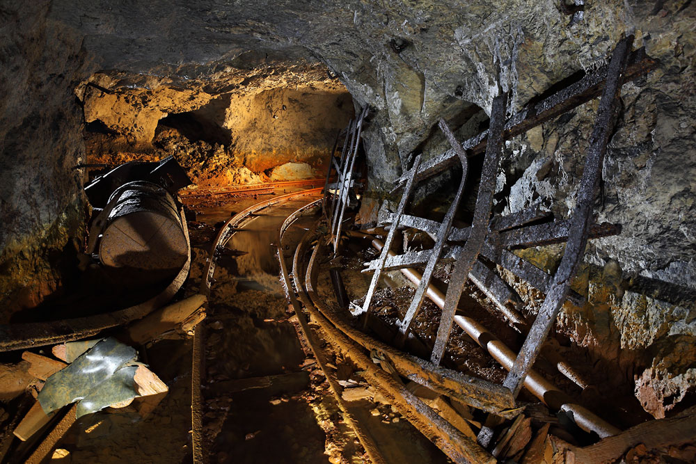 Croisement de roulages, encombré par un cuffat (à gauche) et des segments d'aiguillages