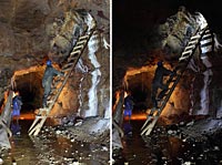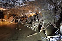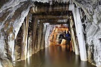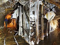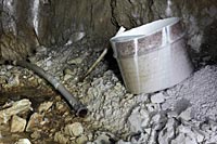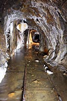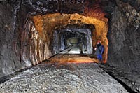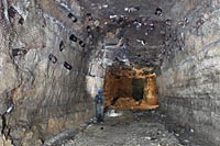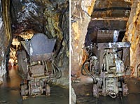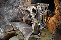 Du matériel minier est également présent dont quelques berlines et surtout deux superbes chargeuses à air comprimé Eimco. L'exploitation du minerai se faisait dans des dépilages situés au dessus du roulage, visibles mais inaccessibles sans équipement. Perpendiculairement à ce roulage, quelques galeries de recherche ont été creusées apparemment sans succès. L'une d'entre elles, de section rectangulaire, atteint plusieurs centaines de mètres de longueur.