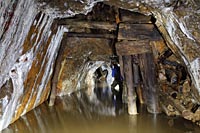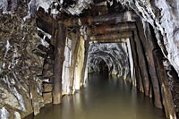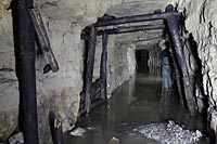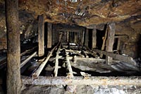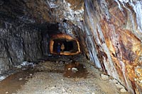 Cet étage ancien est constitué d'un long roulage encore équipé de sa voie ferrée et ponctué de nombreuses trémies de chargement du minerai dans les berlines. Son extrémité ne débouche plus au jour, d'où la montée du niveau d'eau au fur et à mesure que l'on progresse vers l'extérieur. Plusieurs passages ont été consolidés par de superbes boisages en excellent état. Les parements sont souvent recouverts de coulées de calcite dont la couleur varie du blanc pur au noir, en passant par le bleu, l'orange, le rouge... en fonction de la nature des oxydes métalliques dissouts par les eaux de ruissellement.