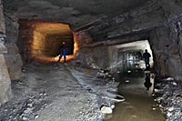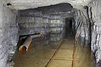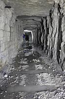 Cet étage se caractérise par de grandes galeries «trackless» rectangulaires, parfois boulonnées et grillagées, témoin des travaux les plus récents. Elles étaient parcourues par de puissants engins Diesel. La galerie principale s'enfonce assez loin dans la montagne ; elle a été tracée en élargissant l'ancien roulage que l'on devine en de nombreux endroits. Au dessus de nos têtes s'ouvrent parfois d'imposants dépilages hauts de plusieurs dizaines de mètres. Ils datent certainement de la précédente période d'exploitation. Il est malheureusement très difficile de les rendre en photographie.