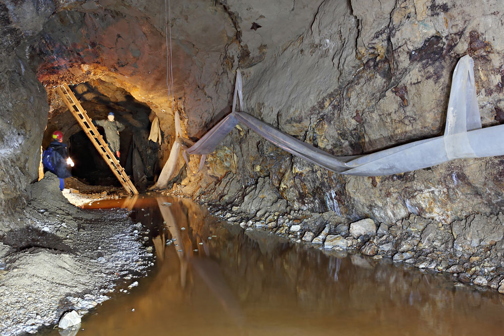 Vers le fond de la mine, l'air de cette galerie en cul-de-sac était renouvelé à l'aide de ventubes