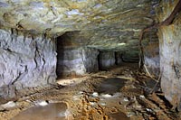 Le quartier visité ne correspond qu'à une toute petite partie de cette importante exploitation ; la plupart des travaux étant aujourd'hui noyés. La mine fut exploitée en trackless à l'aide d'engins diesel qui ont laissé une couche de crasse noire sur les parois des galeries, notamment celle utilisée pour l'aérage des chantiers. L'accès à la mine se faisait par un long travers-banc au sol bétonné et consolidé par de jolis cintres TH lors de la traversée de terrains fragiles (marnes). Dans ce secteur, le minerai a été exploité par la méthode des chambres et piliers abandonnés.