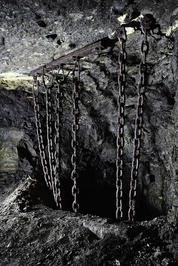 Dans un quartier d'exploitation, un puits de jet dans lesquel était versé le minerai extrait