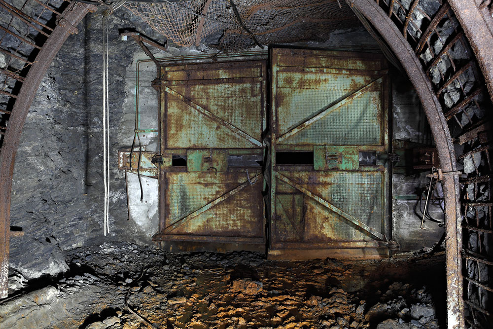Une imposante porte dans le travers-banc principal ; elle permettait d'isoler l'entrée du reste de la mine et de garantir un bon aérage